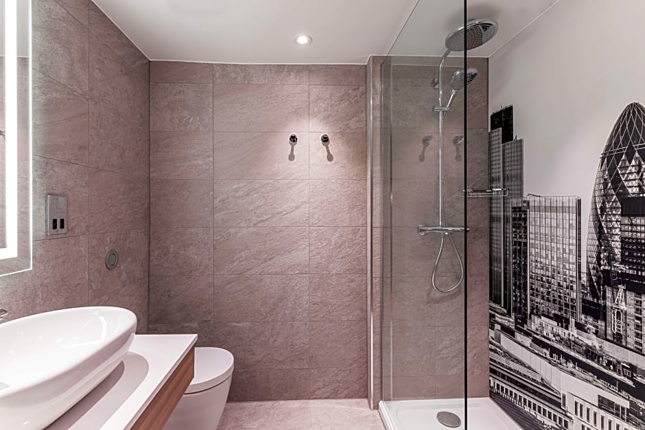 This high floor room access to the executive lounge. Bathrobes, slippers and bottled water provided and the room also includes a TV, a safe and ironing facilities.